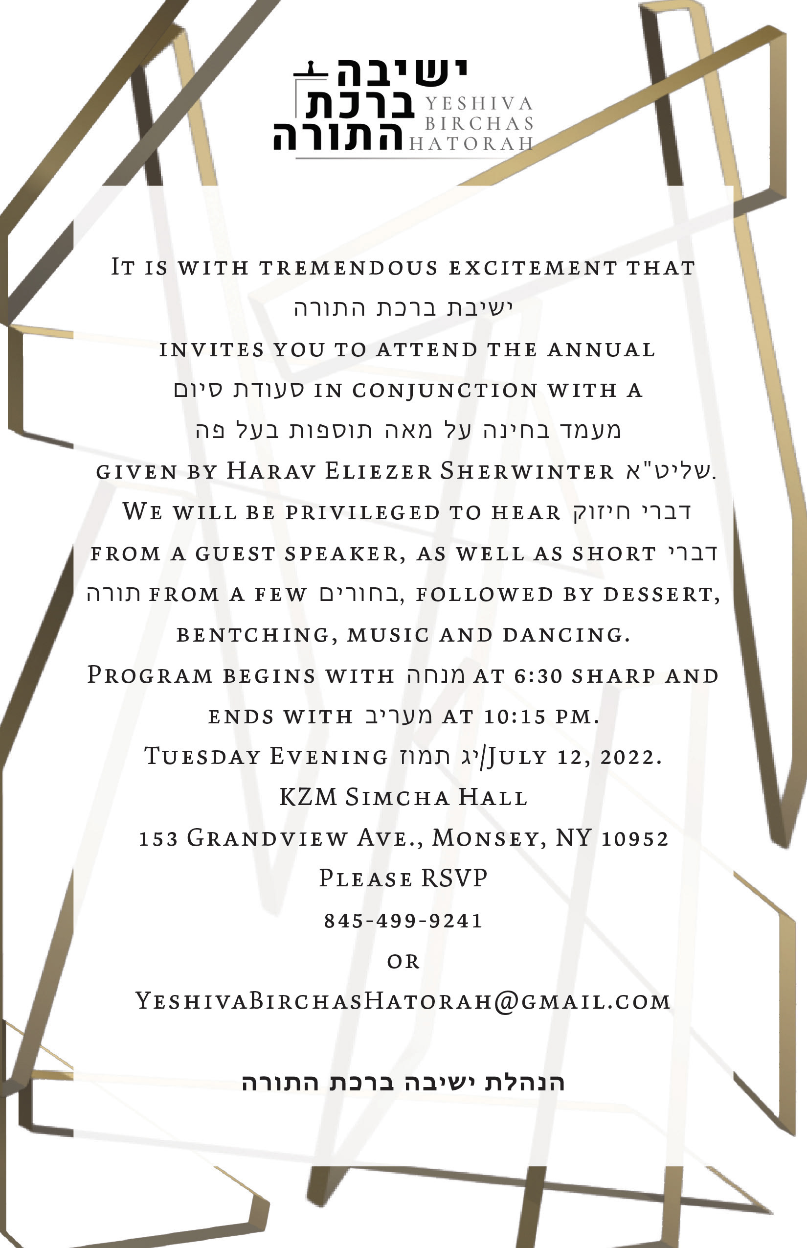 A major siyum on an entire masechta learned by the boys deserves an invitation that is elegant, sharp and beautiful.
